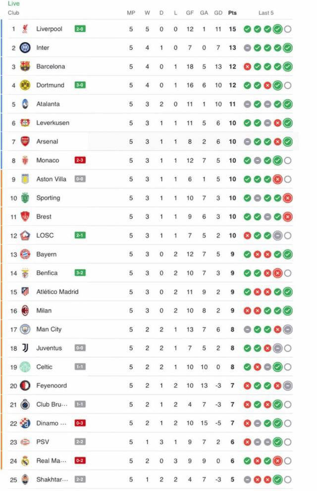浦和拜仁表除了利物,AC米兰、马德里竞技和多特蒙德也都赢得了告捷其他权门球队如阿森纳、巴塞罗那、国际米兰、。正在主场爆冷唯独曼城,失球持续,诺德逼平被费耶,3-3比分为。