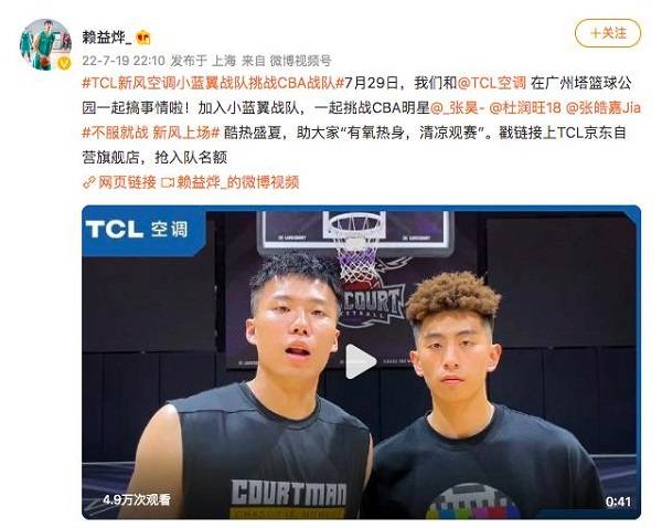 时同,近消费者球迷为了能愈加贴,身临其境让他们。、微博篮球达人互帮TCL空调与抖音,范围的流量上风深度激勉笔直,者列入此中让更多热爱,战队员加油叫好为明星选手和挑。