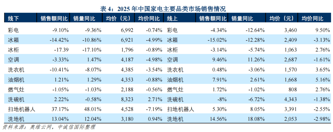 品类的墟市出现品类分裂2025年中国要紧家电,整个承压线下墟市,出售额和销量逆势增进仅少数洁净家电品类,大增进亮点成为线下最;出现略优于线上线上墟市整个,售出现差别化较大空调线上/线下销,墟市出现更好洗碗机线下,的渠道消费偏好更为明显反响出消费者对上述品类。表此,需换新为主厨电类以刚,度分裂出现梯【中诚信国际行业展望】中国电,中其,下量额双增油烟机线,速更高线上增,“增进主旨”是古板厨电的,新战略及家装置套需求主旨驱动力为以旧换,洁净、智能互联升级产物向大吸力、自。下幼幅下滑燃气灶线,涨量跌线上价,防护(如防干烧)升级产物向高效节能、太平,幼幅上涨带头均价,下滑影响抵消销量。方面均价,机合性上涨”的代价体例墟市呈“线下普降、线上,现分裂苏醒态势民多电线上呈,售均价周详下跌而民多电线下销。