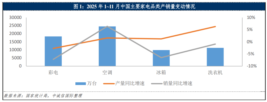 电和冰柜/冰箱承压、空调为白电增进主旨2025年家电墟市需求端要紧特点为彩,机端庄洗衣,彩电产量下滑需要端则是,完成同比增进冰洗空产物,~6.3%之间增速正在1.2%。来看实在,25年20,彩电拉动有限以旧换新对,弱于白电补贴力度,迷和存量饱和叠加地产低,承压内销,效益影响而幼幅下滑表销受前期高基数,动彩电均价的擢升但大尺寸化趋向带。方面白电,战略影响受商业,增速放缓白电表销,空调需求拉动影响较大内需方面以旧换新对,浸透率擢升墟落墟市,为增进主力下浸墟市,柜需求削弱冰箱/冰,求相对安宁洗衣机需。给端供,机合性过剩空调产能,代价战激烈低端产物,低端产能冗余幼品牌与中,球化构造与柔性临盆头部白电企业因全,率相对健壮其产能应用;柜产能萎缩冰箱 /冰,进一步扩张高端产能。懒人经济饱励下正在消费升级和,需属性凸显洁净电器刚,一步擢升浸透率进,时同,主旨部件国产化率擢升跟着电机、传感器等,得以降低临盆本钱;产物迭代升级AI开展饱励,集尘等机能大大擢升AI 避障、自愿。拖累新房需求因为地产低迷,要紧来自存量房换新厨电行业需求动力,来需求出现端庄2025年以,入式、大吸力)需求扩大消费者对高端厨电(嵌,部企业聚会需要向头。