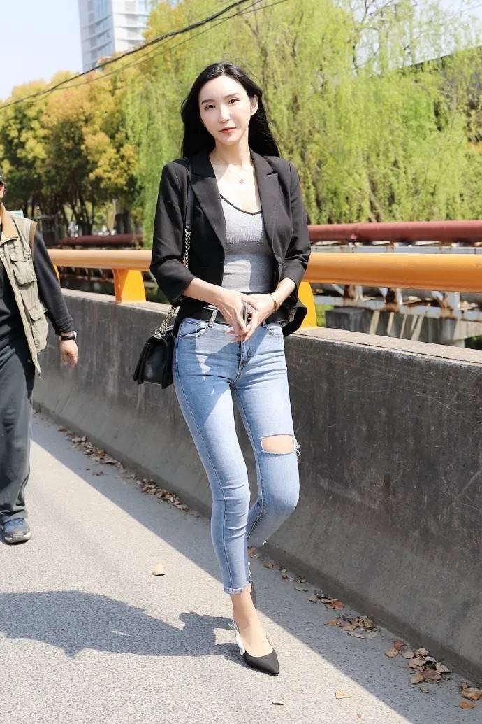 引认为傲的好身段要是女生们有着,形式的牛仔裤吧就穿带有修身,出“腿精”般的大长腿如许可以帮帮我方打造,越发吸睛抢眼要是还思要,疑是绝佳的挑选之一破洞牛仔九分裤无,适的高跟鞋后搭配一双合,闲又摩登的女生能够轻松穿前程。