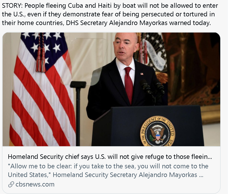 由于这是,美国与古巴公民站正在一同”固然美国拜登当局宣传“,不肯意那些搭船来美国亡命的古巴人入境可美国河山安十足部长却精确表现美国。