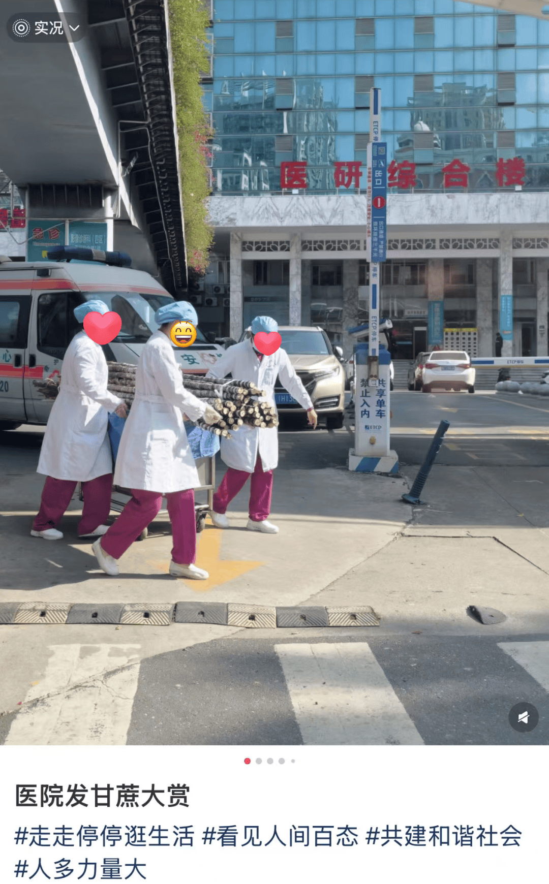 17日3月,享 “病院发甘蔗大赏”有网友正在社交平台发帖分,蔗、院内划一码放着清甜果蔗的画面配图里医护职员用拖车运送整捆果,热议激励。来原,场以果蔗为媒的暖心步履是广州南沙区结构的一,至高校校园、病院机构千吨南沙黑皮果蔗送,生与医护职员免费赠予师。